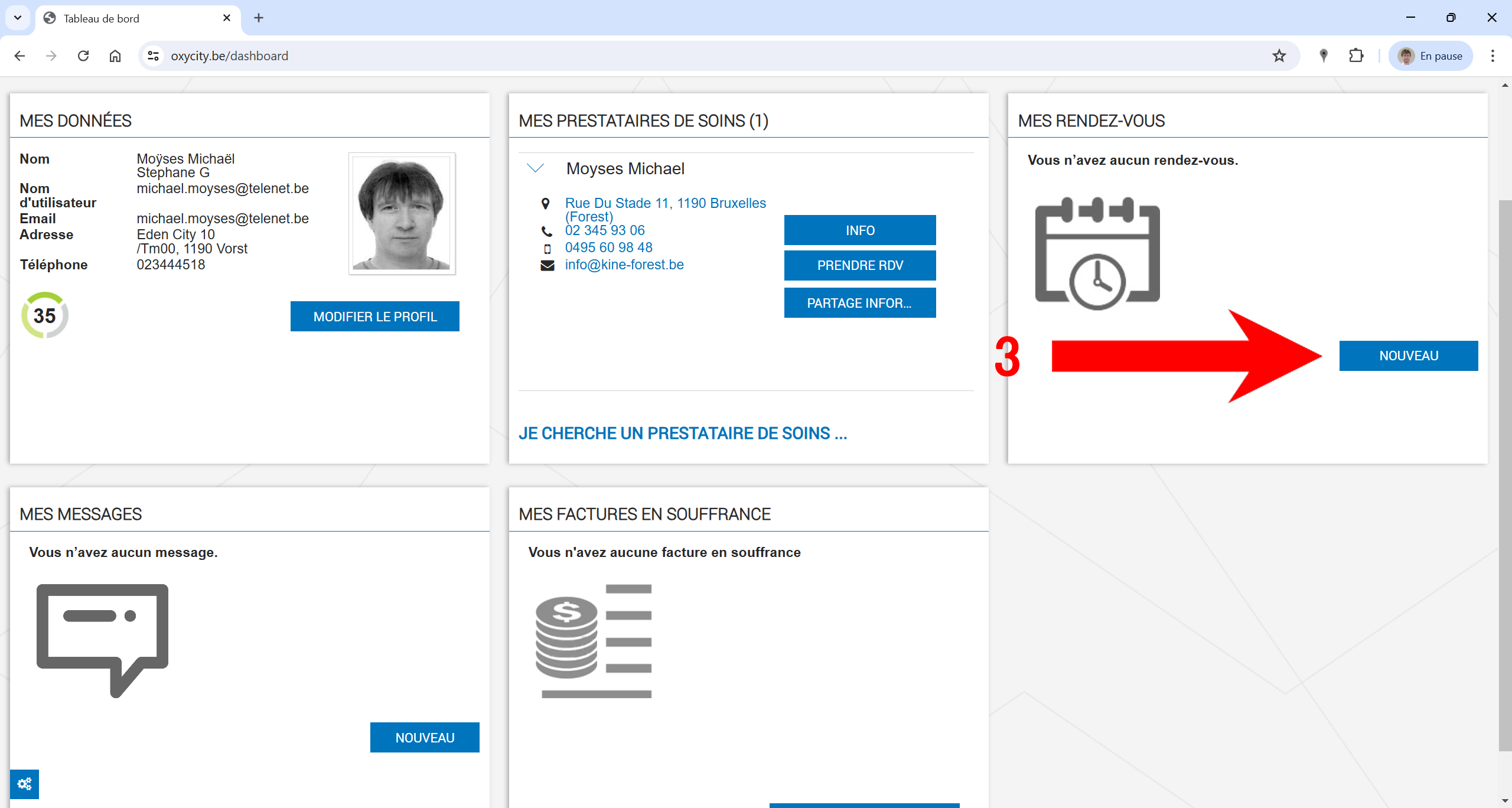 - dans la partie MES RENDEZ-VOUS, cliquez sur NOUVEAU (info)