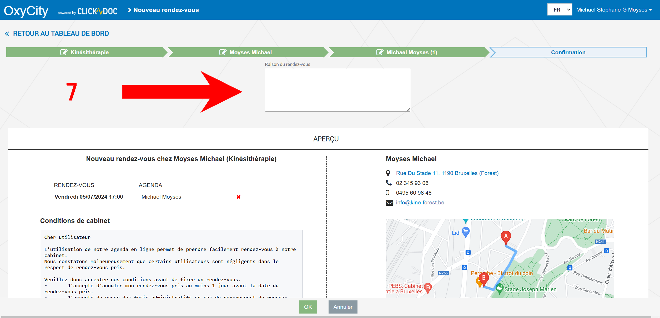 - Validez la prise de rendez-vous en cliquant sur OK (info)